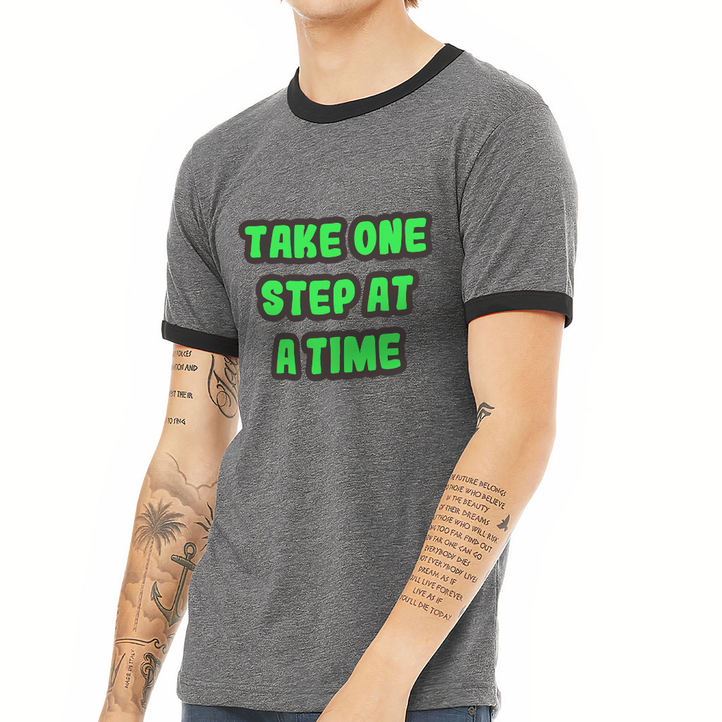 Take One Step at a Time Ringer T-Shirt – Graphic T-Shirt – Quote Ringer Tee