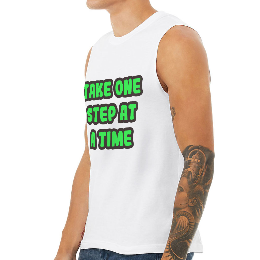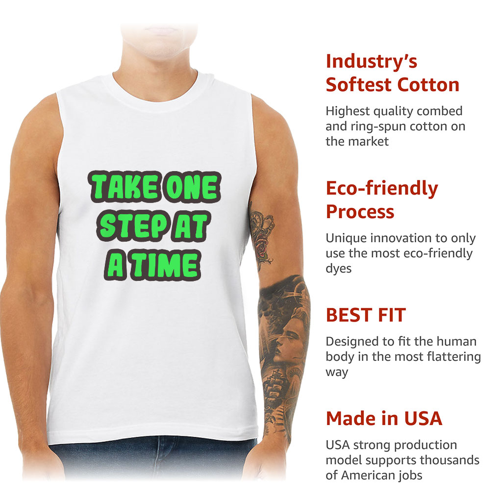 Take One Step at a Time Men’s Muscle Tank – Graphic Men’s Sleeveless T-Shirt – Quote Tank