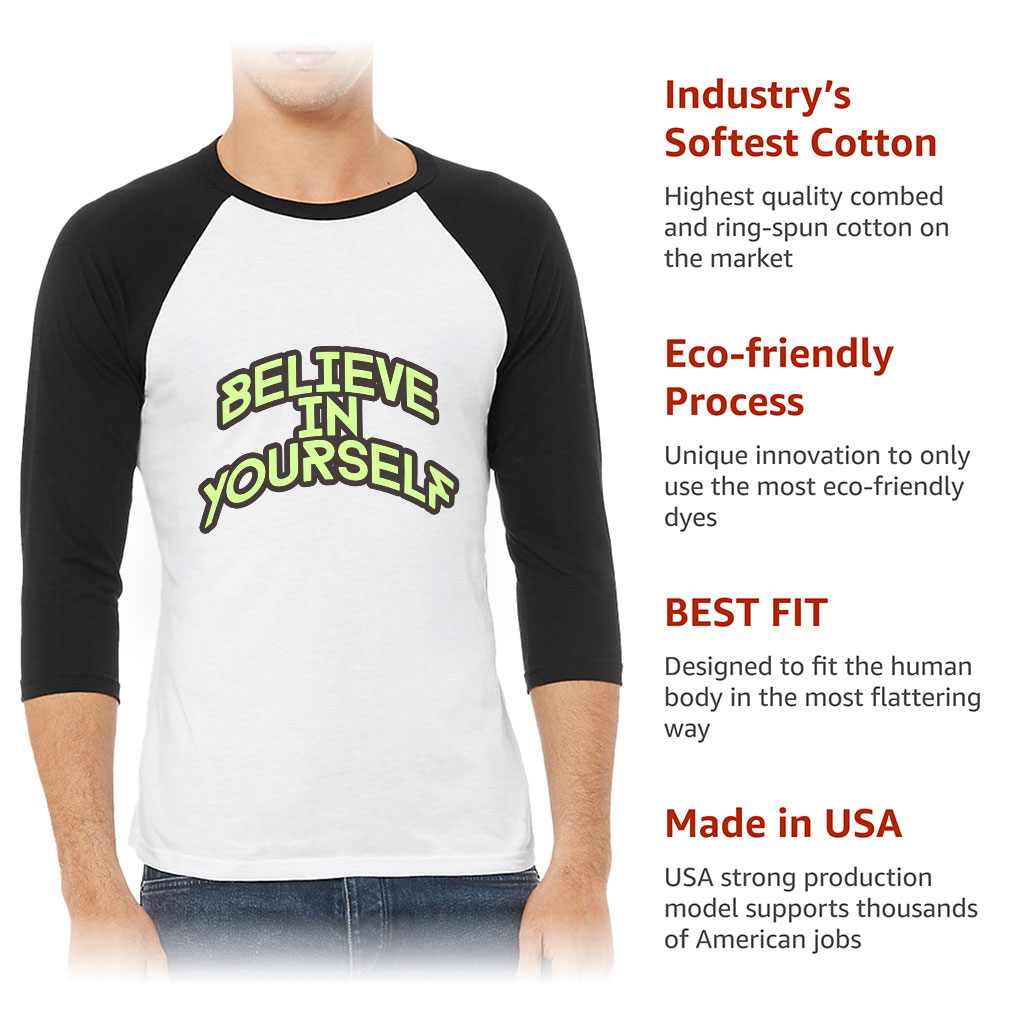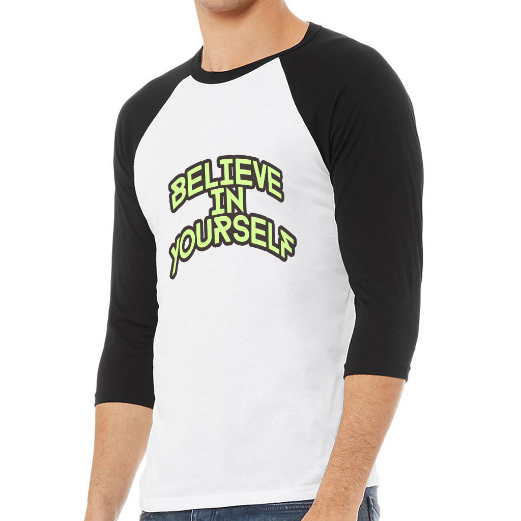Believe in Yourself Baseball T-Shirt – Unique T-Shirt – Word Print Baseball Tee