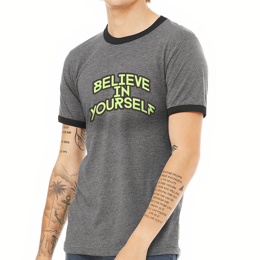 Believe in Yourself Ringer T-Shirt – Unique T-Shirt – Word Print Ringer Tee