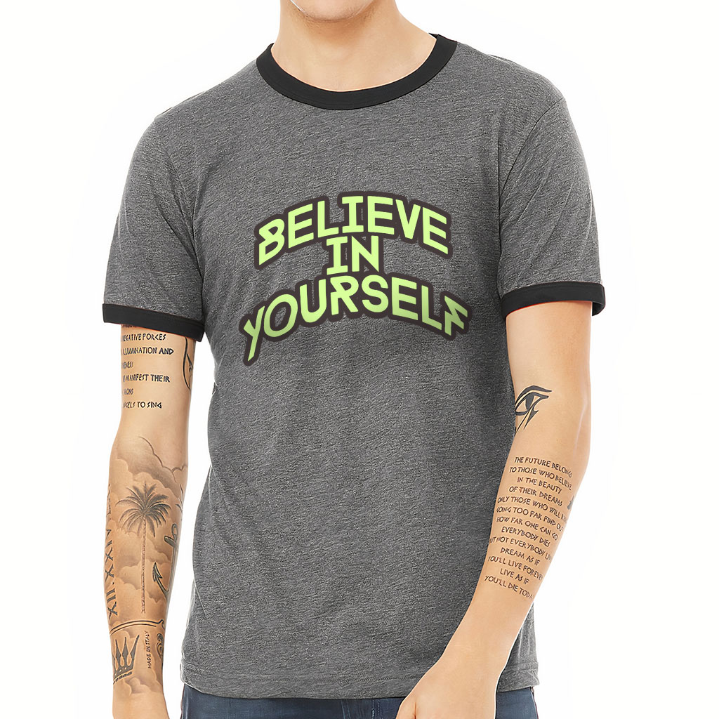 Believe in Yourself Ringer T-Shirt – Unique T-Shirt – Word Print Ringer Tee