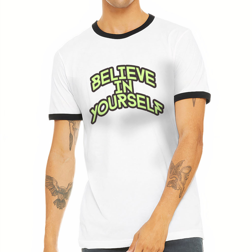 This trendy T-Shirt for men is made of a lightweight and soft cotton-poly blend, breathable and comfortable to wear. Believe in Yourself Ringer T-Shirt will give you an excellent wearing experience all day.