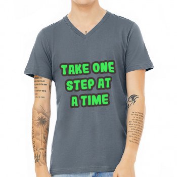 Take One Step at a Time V-Neck T-Shirt – Graphic T-Shirt – Quote V-Neck Tee