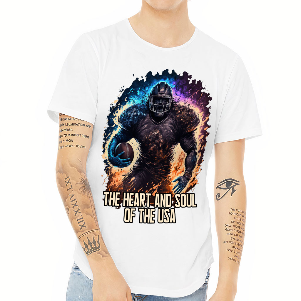 Cool Football Curved Hem T-Shirt – Patriotic Design T-Shirt – Cool Art Curved Hem Tee