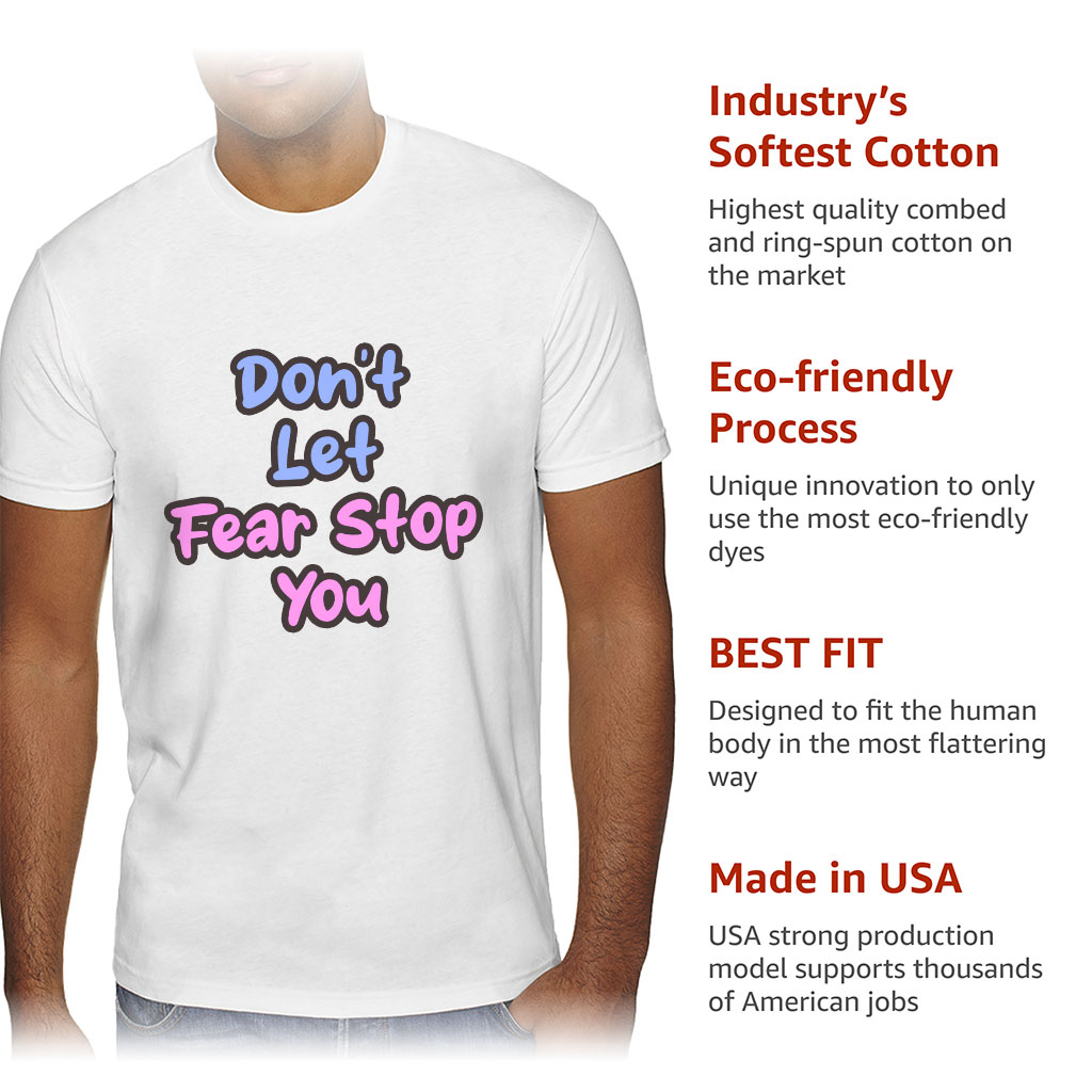 Cotton-Polyester material makes the best combination which is made especially for comfortable clothes. This composition makes Don’t Let Fear Stop You Sueded T-Shirt very soft on the body. Natural fiber lets your skin breathe. It also absorbs moisture to keep your body temperature stable.