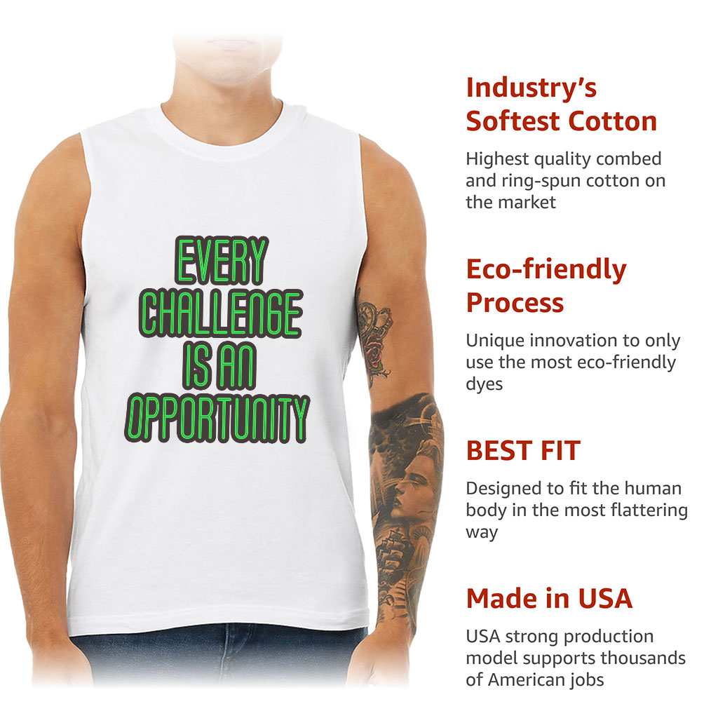 Best gift for yourself or anyone you know. Every Challenge Is Opportunity Men’s Sleeveless T-Shirt is perfect for Christmas, Birthdays, Retirement, daily wear, special occasions, or holidays. Wear this shirt and be awesome!