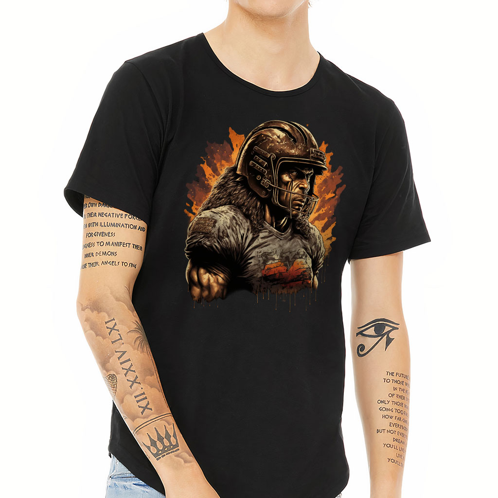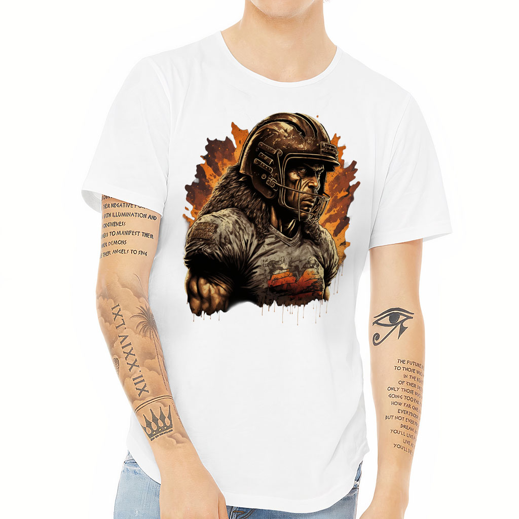 Football Player Curved Hem T-Shirt – Graphic Art T-Shirt – Cool Curved Hem Tee