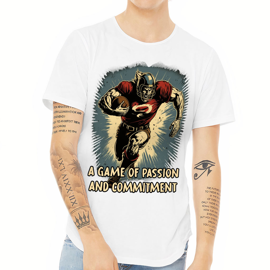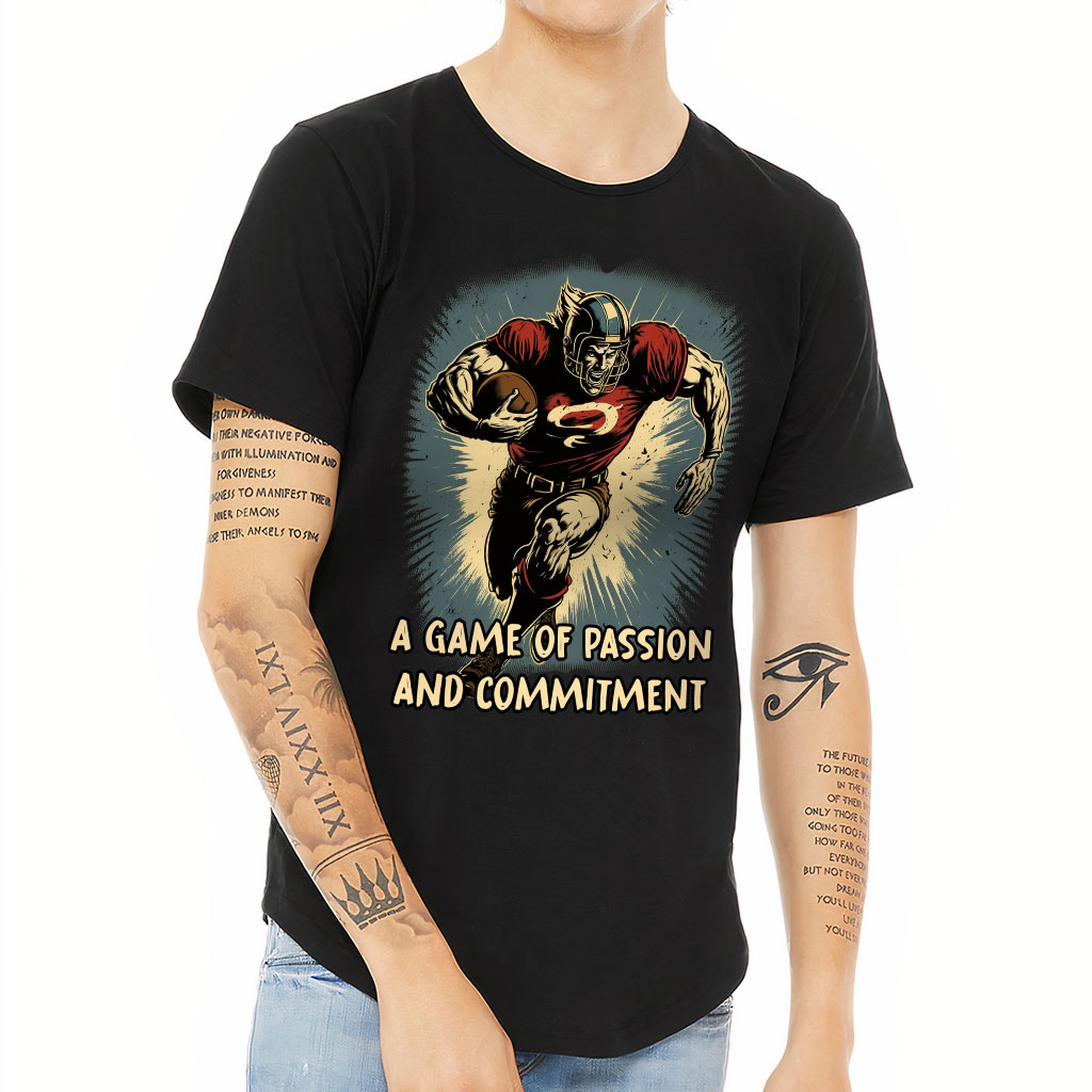Football Themed Curved Hem T-Shirt – Sport Themed T-Shirt – Graphic Curved Hem Tee