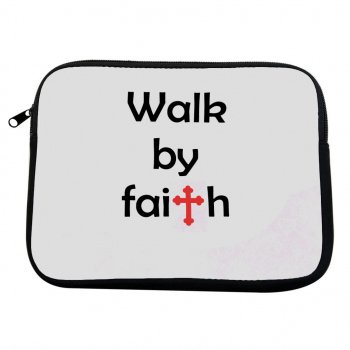 Walk by Faith 2-Sided Print Mac Book Pro 14″ Sleeve – Word Art Laptop Sleeve – Christian Mac Book Sleeve