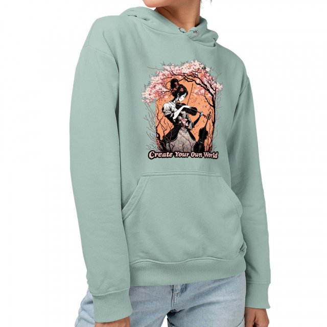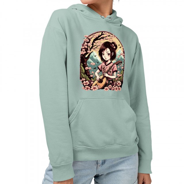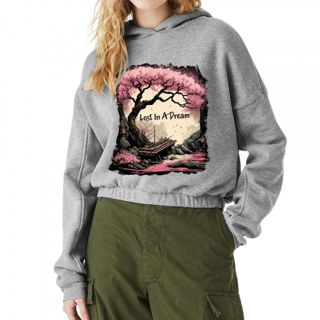 Japan Design Cinched Bottom Hoodie – Cartoon Women’s Hoodie – Flower Hooded Sweatshirt