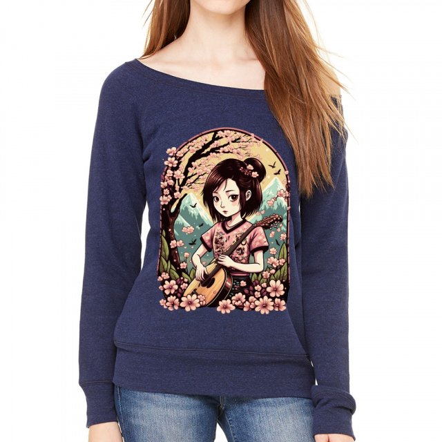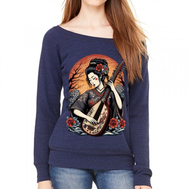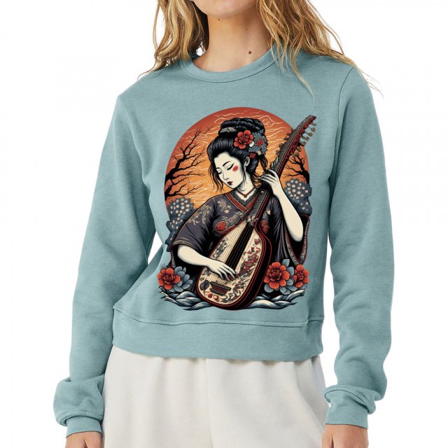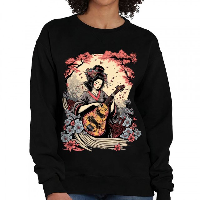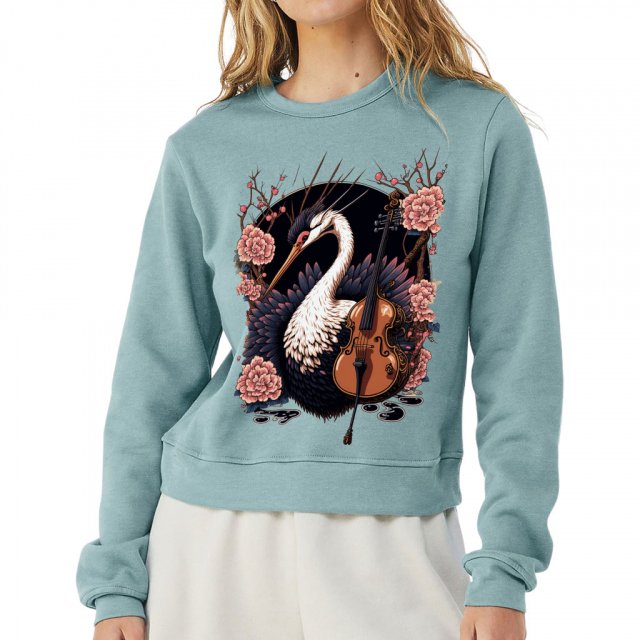 Japanese Themed Pullover Sweatshirt – Crane Bird Women’s Sweatshirt – Music Sweatshirt