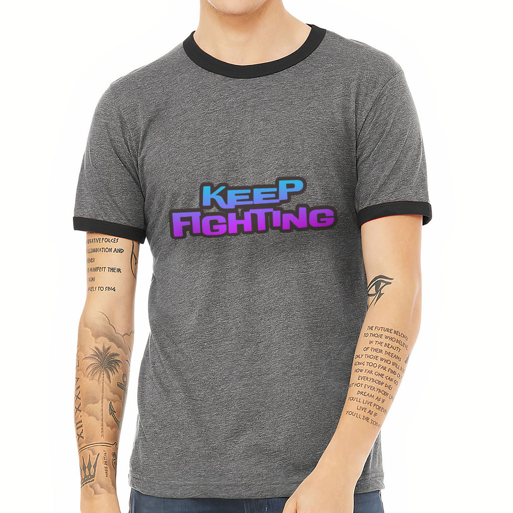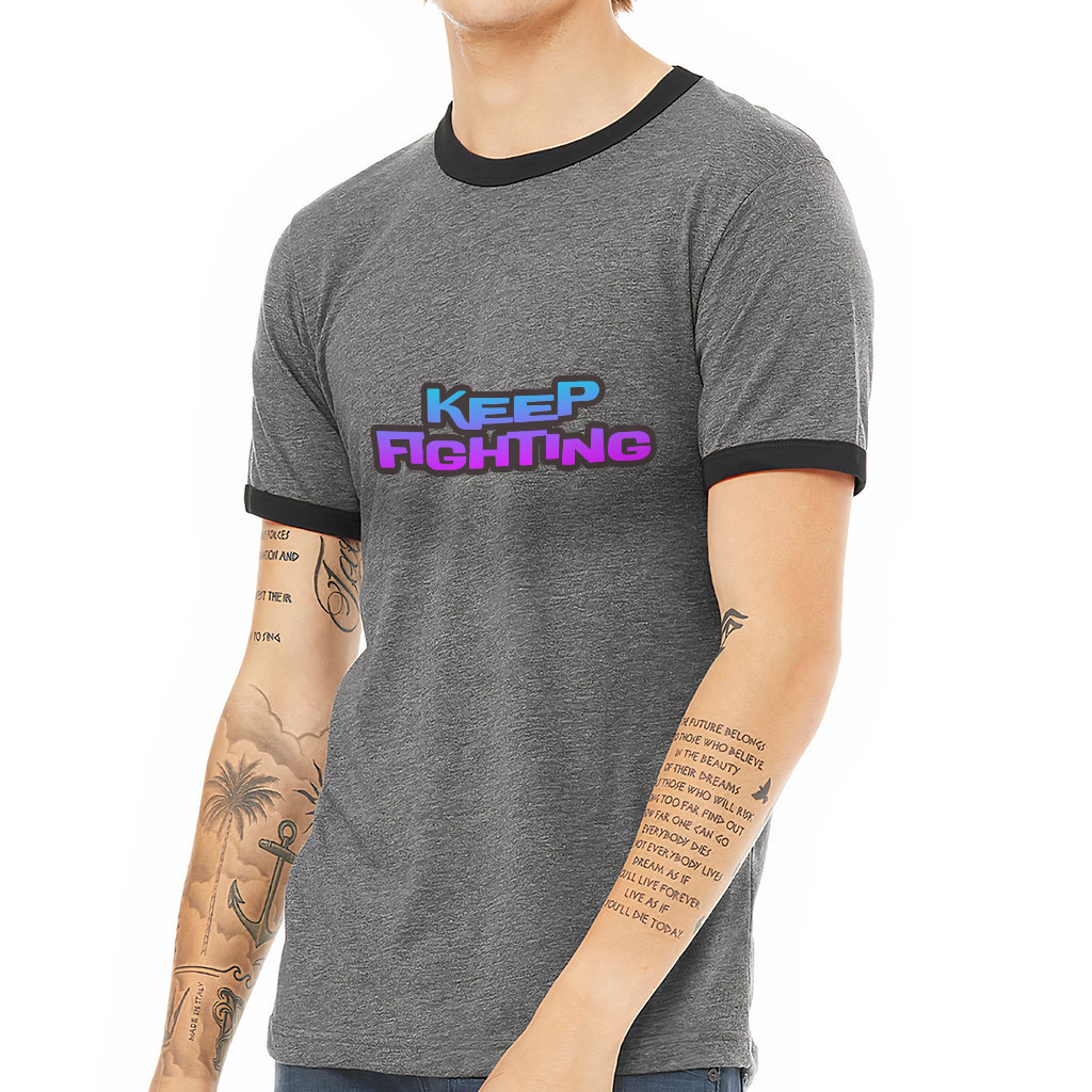 Keep Fighting Ringer T-Shirt – Word Art T-Shirt – Phrase Ringer Tee