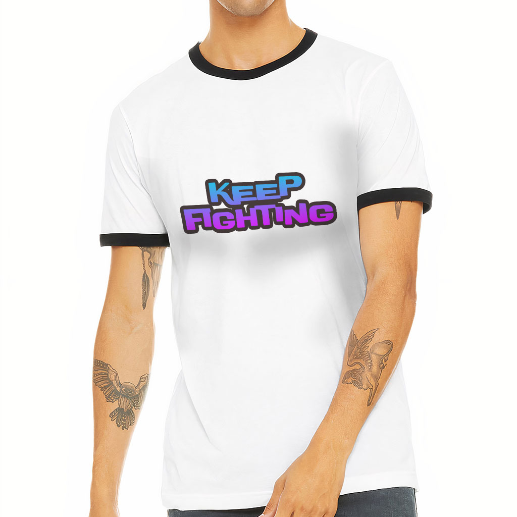 Keep Fighting Ringer T-Shirt – Word Art T-Shirt – Phrase Ringer Tee