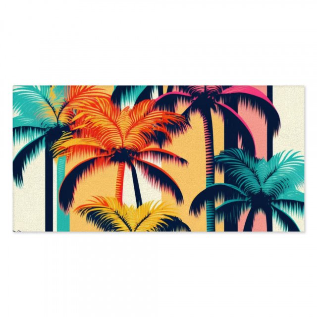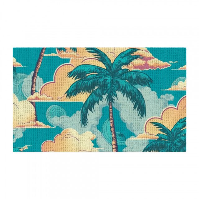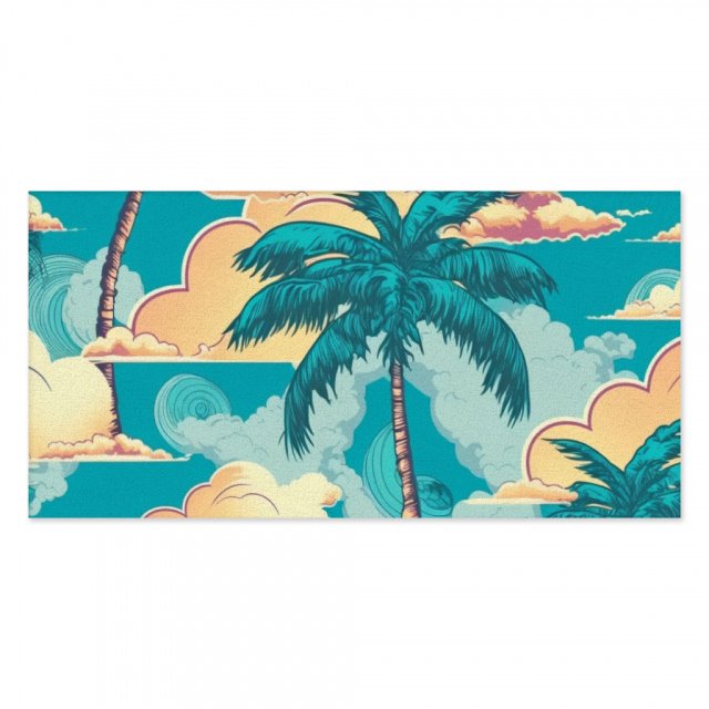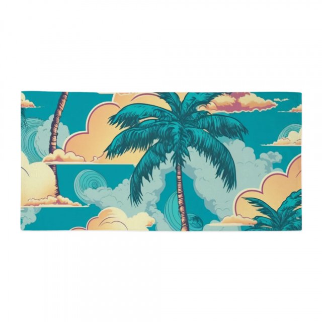 Palm Tree With Waves Sport Towel is sewn around the edges, making it durable and long-lasting