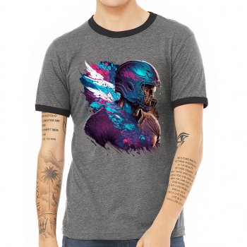 Football Print Ringer T-Shirt – American T-Shirt – Themed Ringer Tee