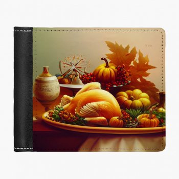 Thanksgiving Themed Men’s Wallet – Turkey Art Wallet – Dinner Wallet