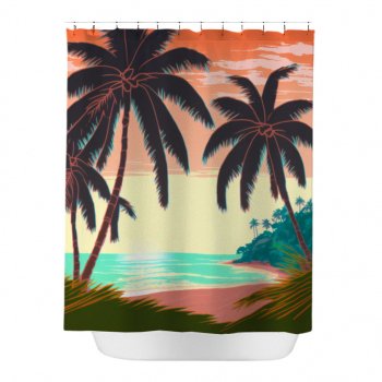 Tropical Print Shower Curtain – Palm Tree Item – Unique Bathroom Items
