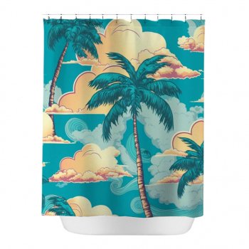 Palm Tree Print Shower Curtain – Tropical Themed Items – Cute Bathroom Items