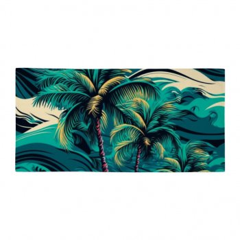 Palm Tree With Waves Polycotton Towel – Summer Themed Item – Unique Bathroom Gifts