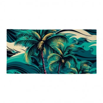 Palm Tree With Waves Beach Towel – Unique Bathroom Gifts – Summer Themed Item