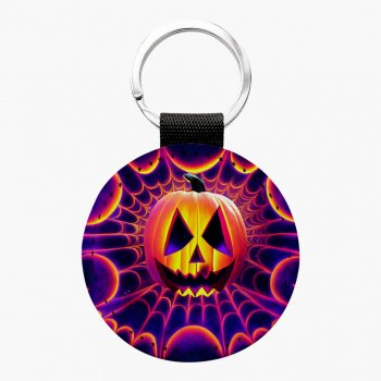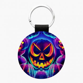 Halloween Round Keychain – Jack O’Lantern Key Ring – Trippy Round Keychain