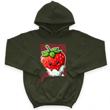 Strawberry Print Kids’ Sponge Fleece Hoodie – Cartoon Kids’ Hoodie – Cute Design Hoodie for Kids