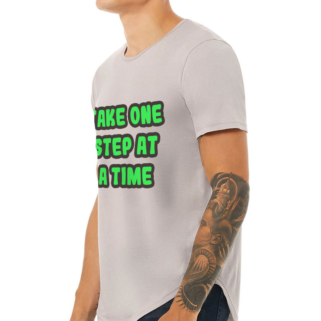 Take One Step at a Time Curved Hem T-Shirt – Graphic T-Shirt – Quote Curved Hem Tee