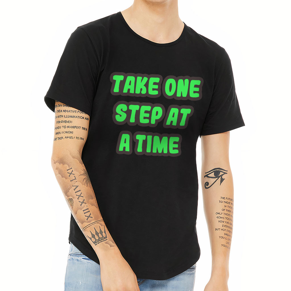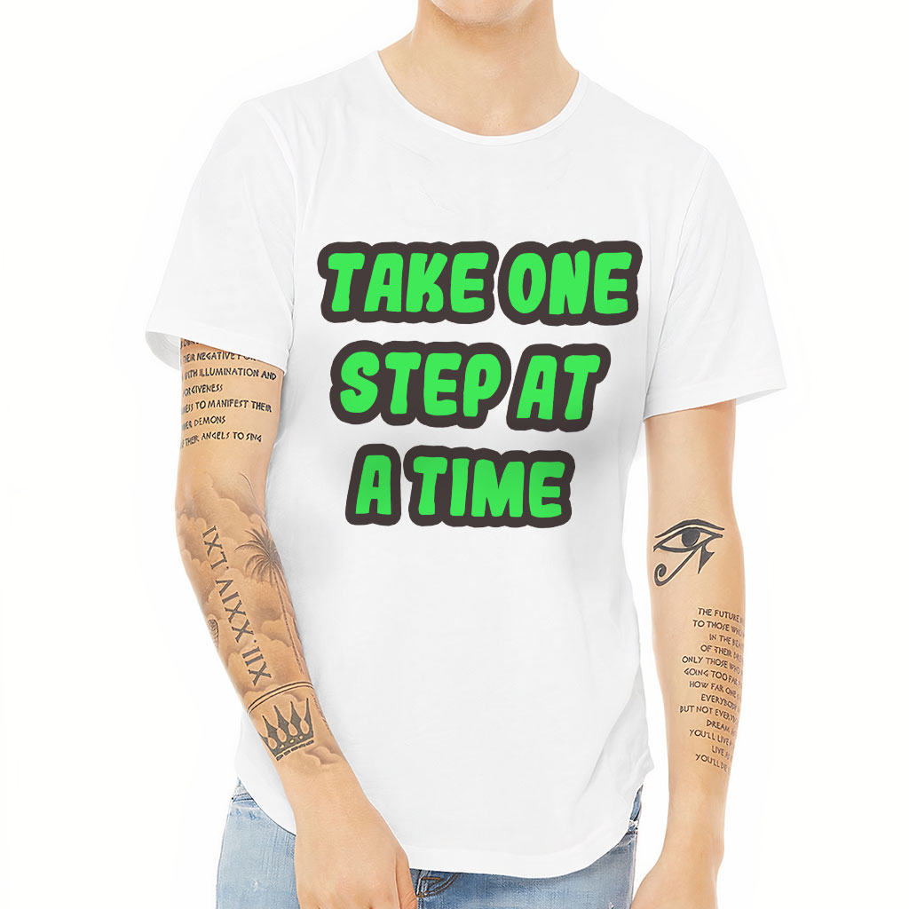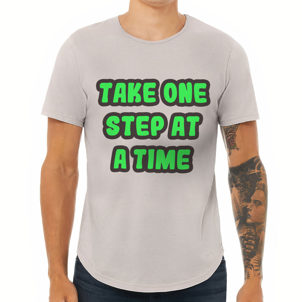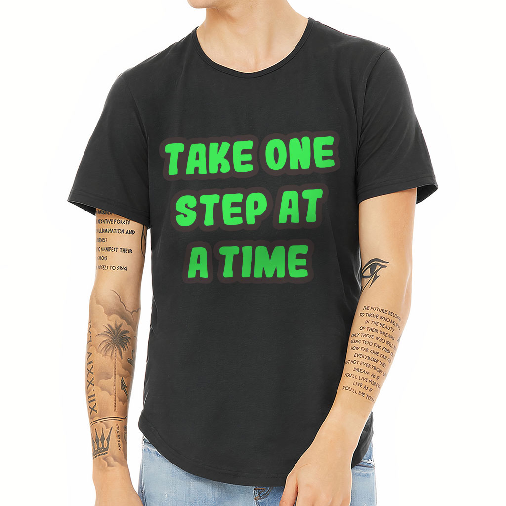 Take One Step at a Time Curved Hem T-Shirt – Graphic T-Shirt – Quote Curved Hem Tee