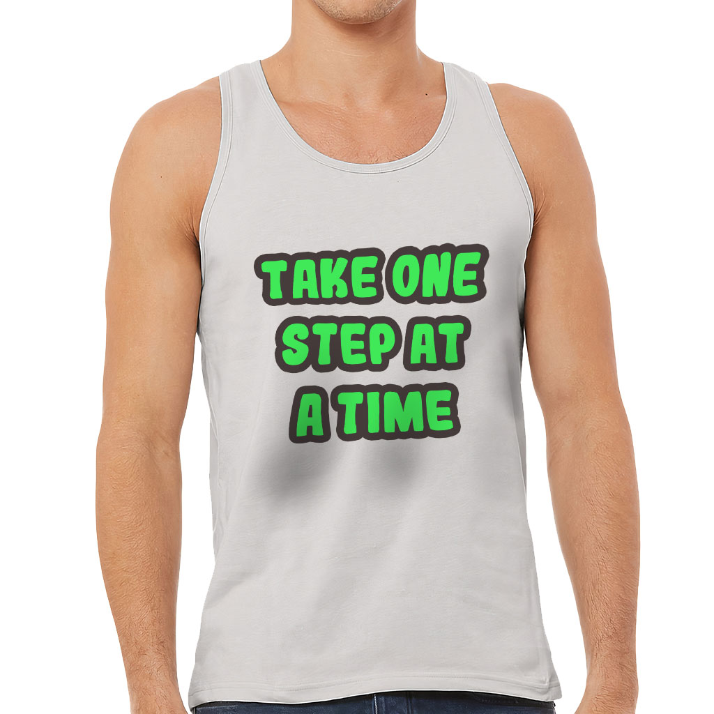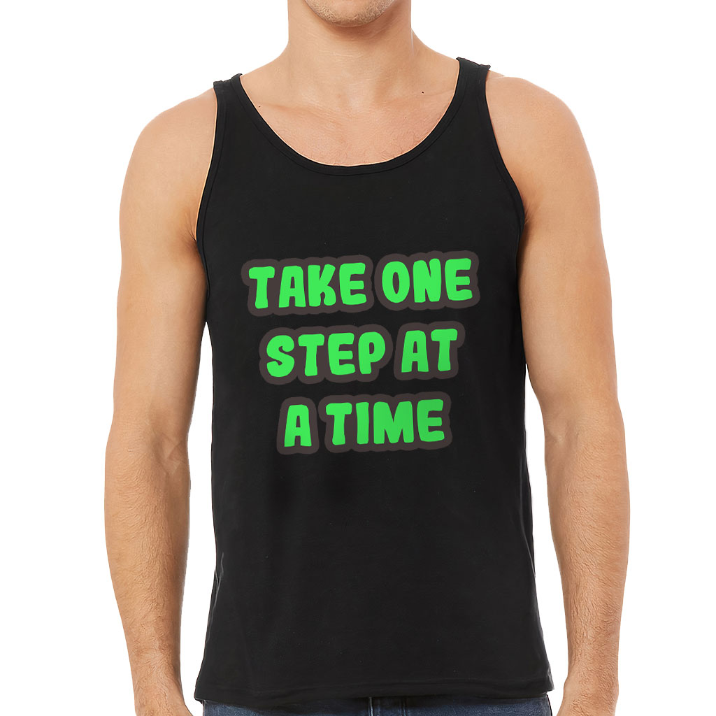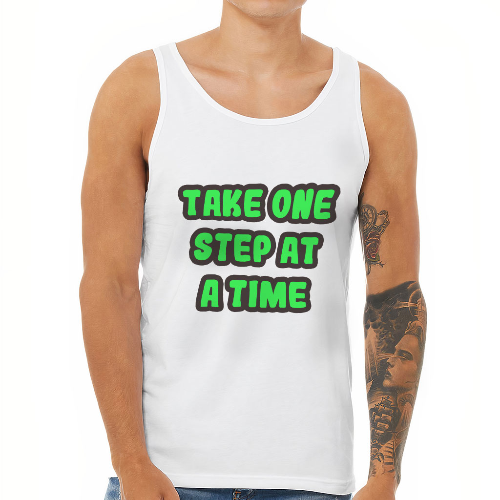 Take One Step at a Time Tank – Graphic Workout Tank – Quote Jersey Tank