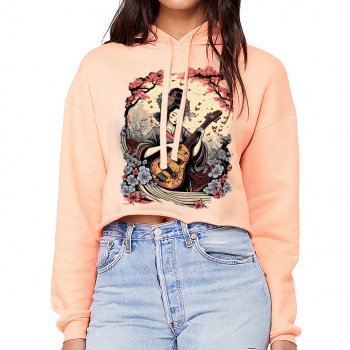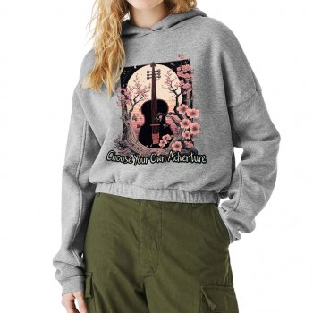 Music Instrument Cinched Bottom Hoodie – Blossom Women’s Hoodie – Japanese Art Hooded Sweatshirt